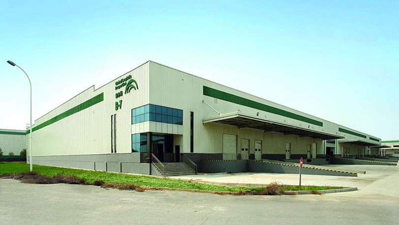 北京普洛斯位于北京市三大物流基地之一的通州物流基地,緊鄰亦莊經(jīng)濟(jì)技術(shù)開發(fā)區(qū)和京津塘高速,2010年建設(shè)。屋面為鍍鋁鋅光板,牌號(hào)為S350GD+AZ,鋁鋅重量為165克/平方米。墻面采用寶鋼高耐侯鍍鋁鋅彩涂鋼板,顏色主體為白灰,色帶為闊葉綠,鍍鋁鋅鍍層重量150克/平方米,牌號(hào)為TS300GD+AZ。
