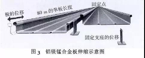 屋面板基材通常采用國際牌號AA3004 的鋁鎂錳合金壓型制作,合金狀態(tài)為H36/H46。其屈服強度≥190 MPa,抗拉強度在240~285 MPa,伸長率≥3%。收邊板基材采用國際牌號AA3004 的鋁鎂錳合金壓型制作,合金狀態(tài)為H34/H44,其屈服強度170MPa ,抗拉強度在220~265 MPa ,伸長率≥3%。