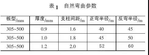 彎弧板機器正彎、反彎參數(shù),見表2。